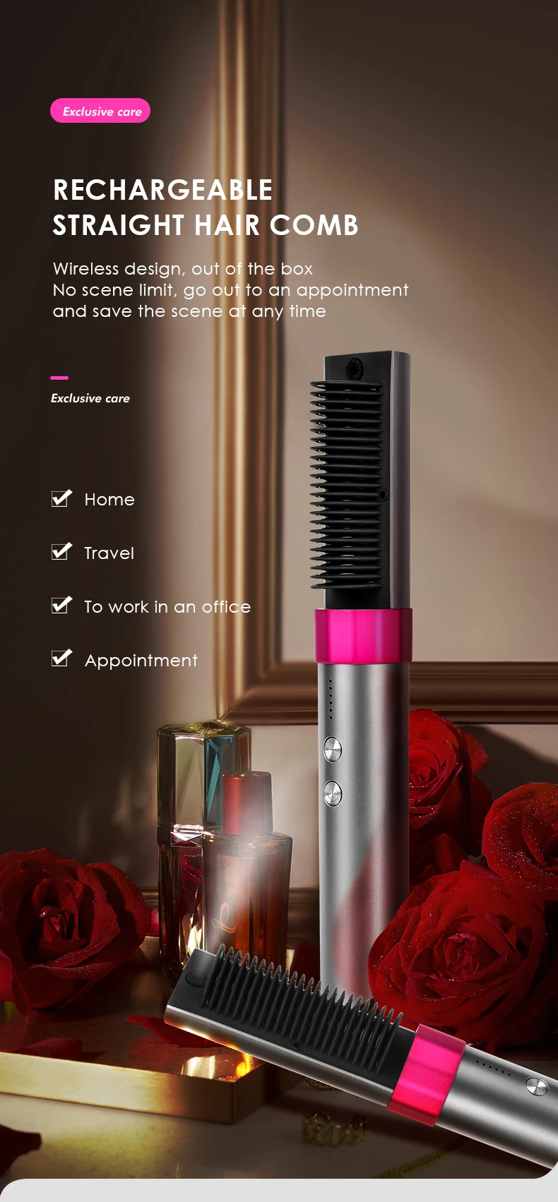 Cordless Negative Ion Hair Straightener with PTC Technology Rechargeable Lithium Battery for Car Use
